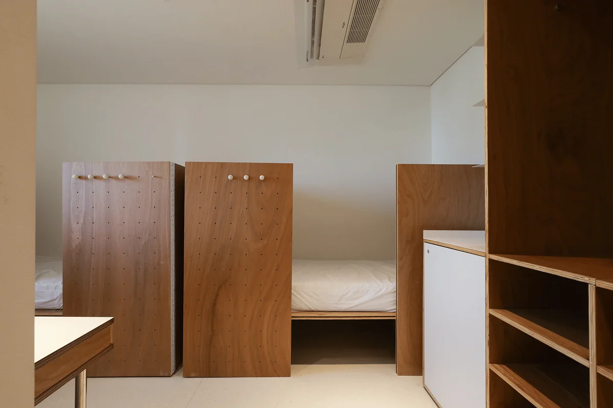 2인실 구성: 싱글베드 2개 (각자 독립적인 침대), 개인 옷장 및 수납공간 (각자 배정), 독립 화장실 (샤워부스, 세면대, 변기), 에어컨 및 난방, 개인 책상 또는 워크라운지 이용