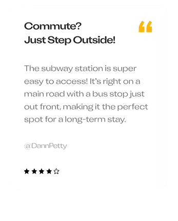 The subway station is super easy to access! It's right on a main road with a bus stop just out front, making it the perfect spot for a long-term stay.